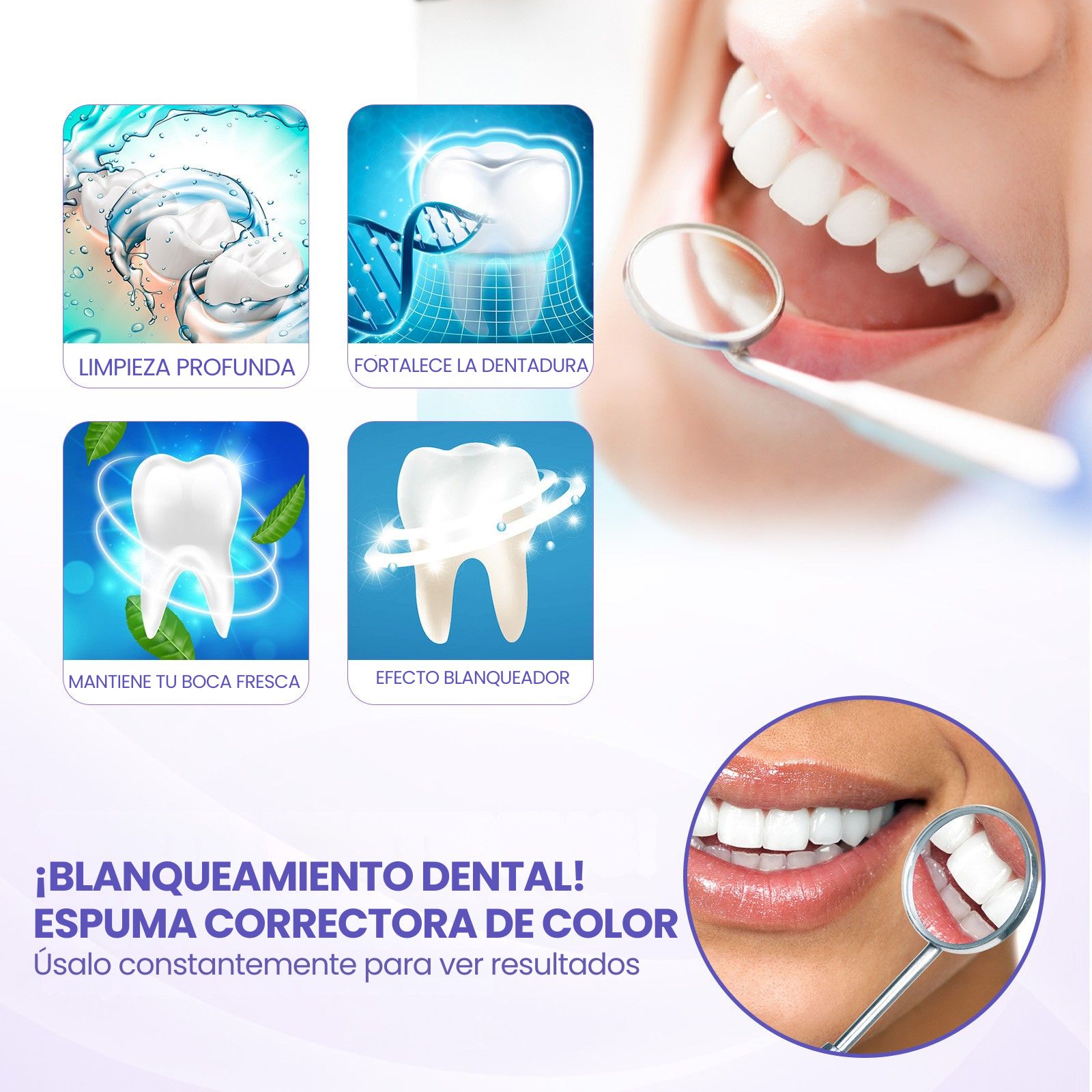 El blanqueamiento UV integrado y la corrección del color abordan las manchas superficiales. La mayoría de los usuarios notan dientes más brillantes en una semana.